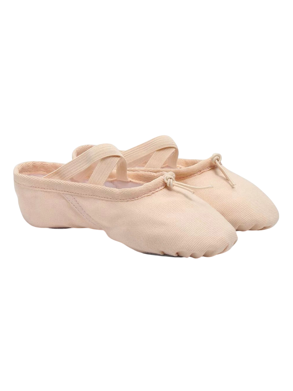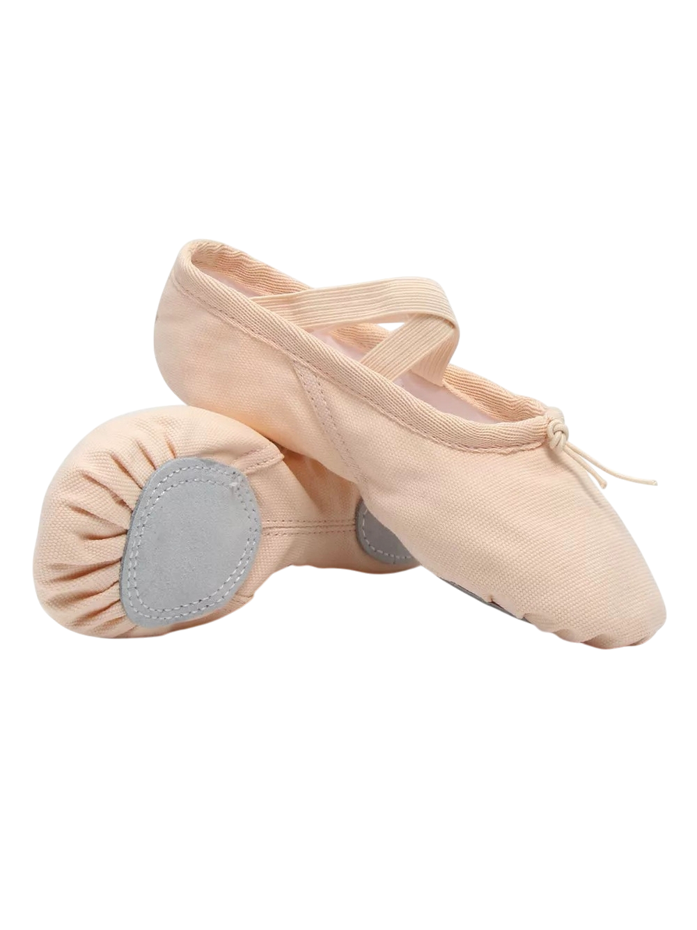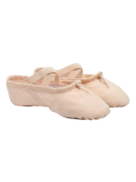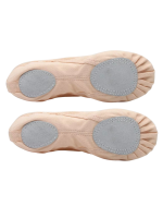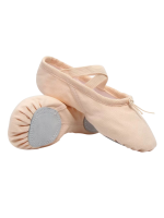 Soft ballet shoes with adjustable strings in the front for better foot support.