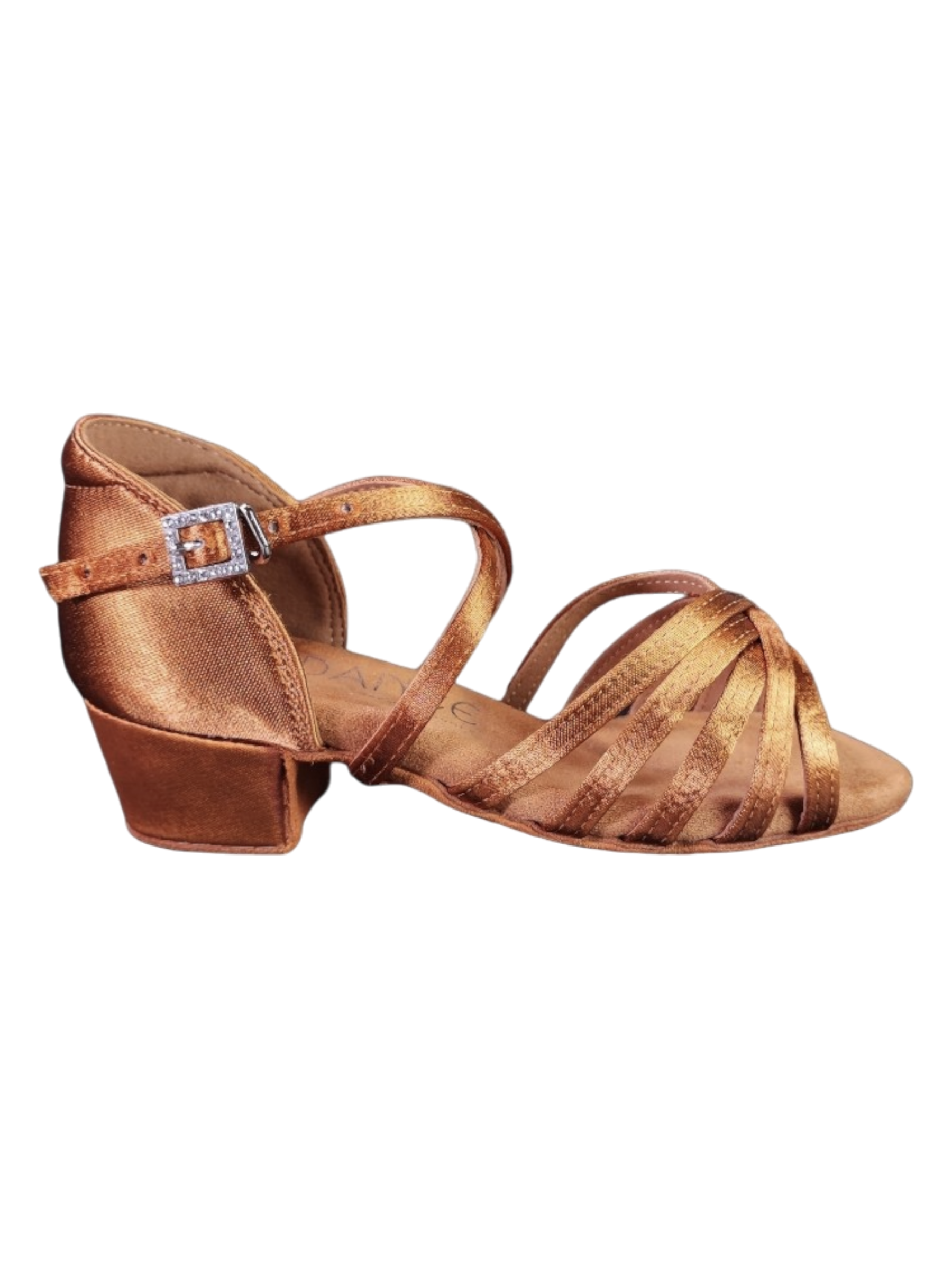 Dance shoes made for kids with love and respect in their growth. They have a small 3cm heel, supportive stripes and a beautiful shiny bronze colour.